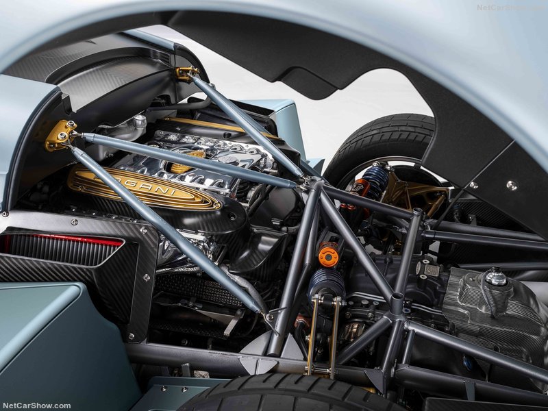 The rear engine cover, which has a footprint of more than 3.7 m2, and is 360 mm longer than the one of the Huayra Coupé, conceals a mechanical prodigy: the Pagani V12, which, on this series, is capable of developing 840 HP with 1,100 Nm of torque.